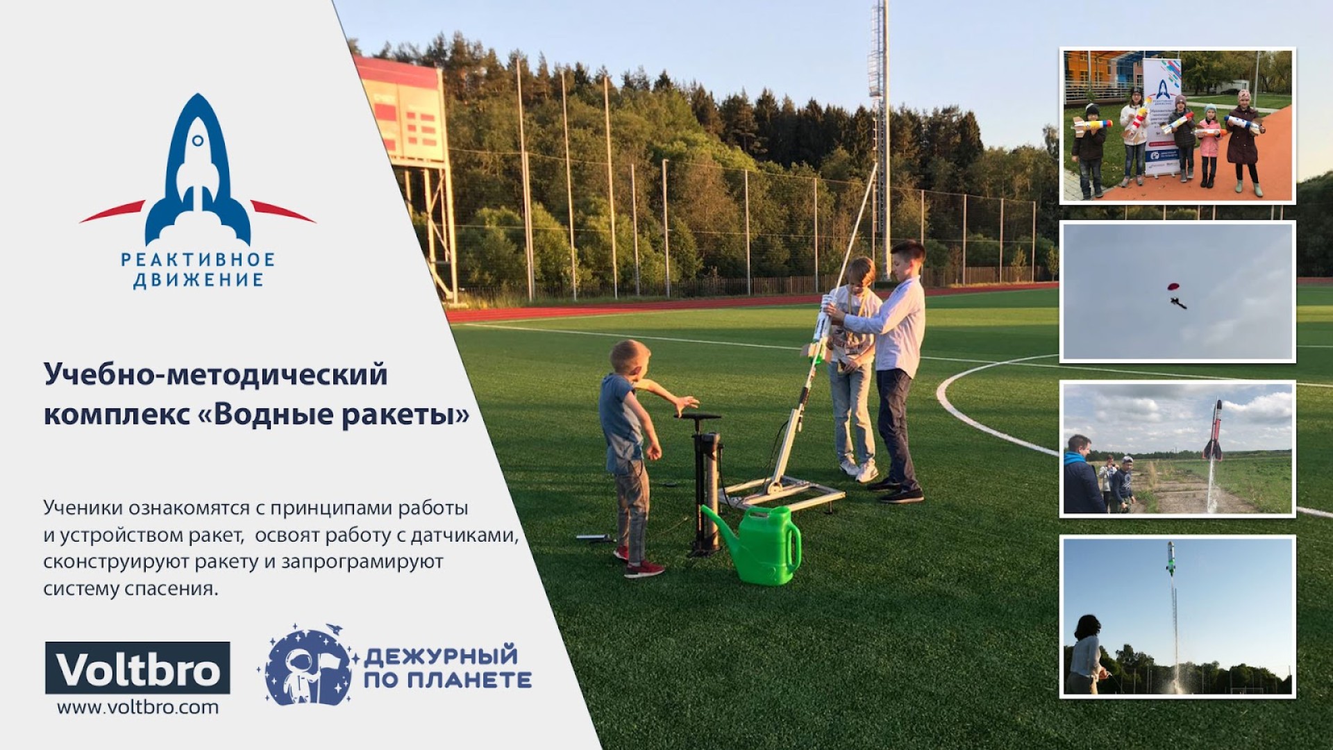 | Оборудование и материалы | Учебный конструктор спутника Интросат. Базовый набор. Версия для урока технологии. - 5 шт, Конструктор Интросат. Расширение "Механические конструкции".Версия для урока технологии. - 5 шт, Конструктор Интросат. Конструктор Интросат. Расширение "Электропитание спутника". Версия для урока технологии. - 5 шт, Конструктор Интросат. Расширение "Магнетизм". Версия для урока технологии. - 5 шт, Конструктор водной ракеты - 5 шт., Пусковое устройство для водных ракет с приемной радиостанцией - 1 шт, Конструктор приемной станции - 5 шт. Расширенный набор для проведения групповых практикумов по группе тем "Спутникостроение" (фемтоспутниковая платформа, мультиметры, кримперы, зарядные устройства для аккумуляторов) - 1 шт, Комплект дополнительных расходных материалов для лаборатории. - 1 шт, Сервис "Орбита.Челлендж". Расширенная лицензия на 3 года - 1 шт, Электронные методические пособия по группам тем "Небесная механика", "Спутникостроение", "Радиосвязь", "Механические конструкции", "Электропитание спутника", "Магнетизм", "Обработка космических снимков", "Прием космических данных", "Ракетостроение" |